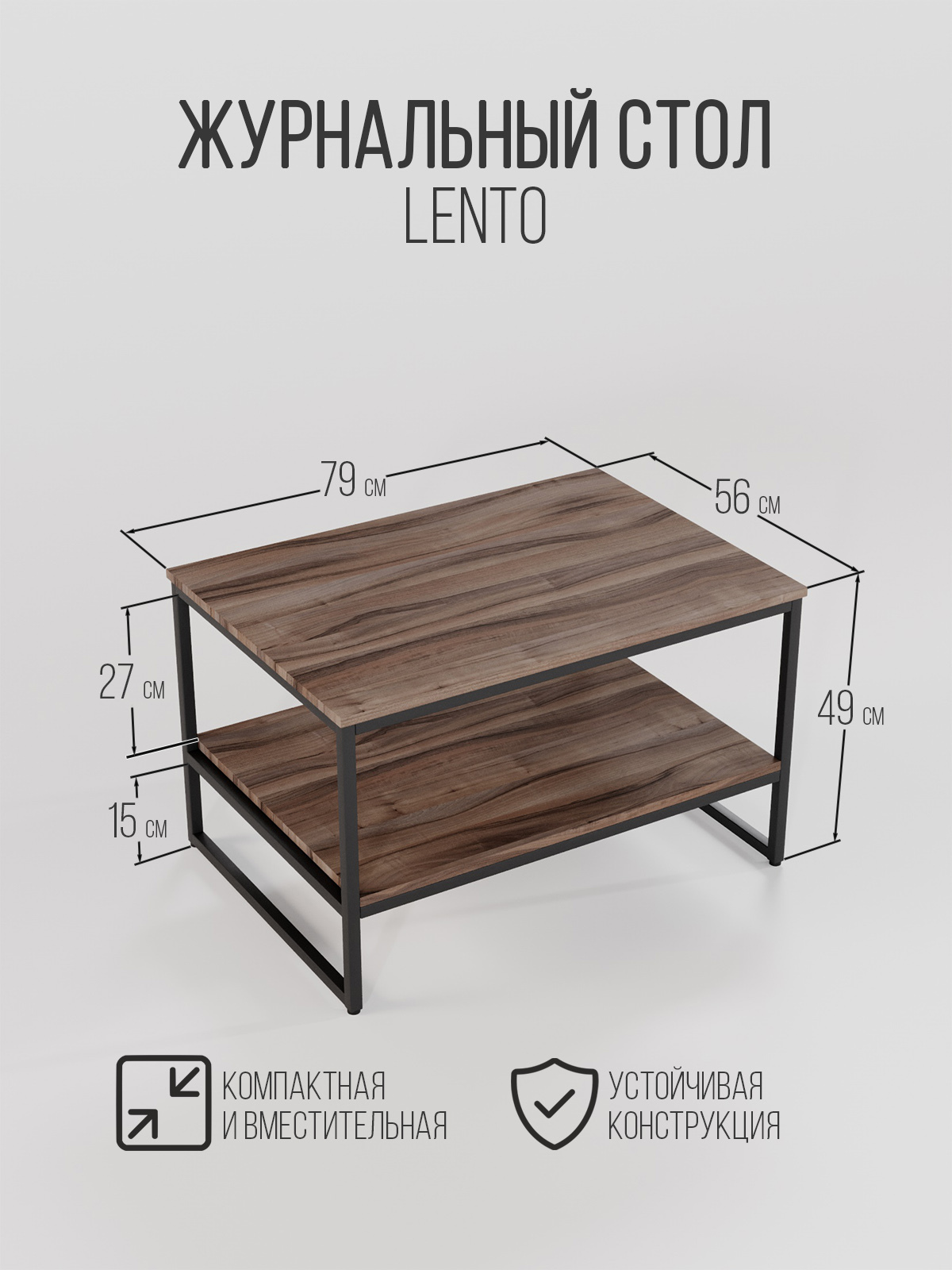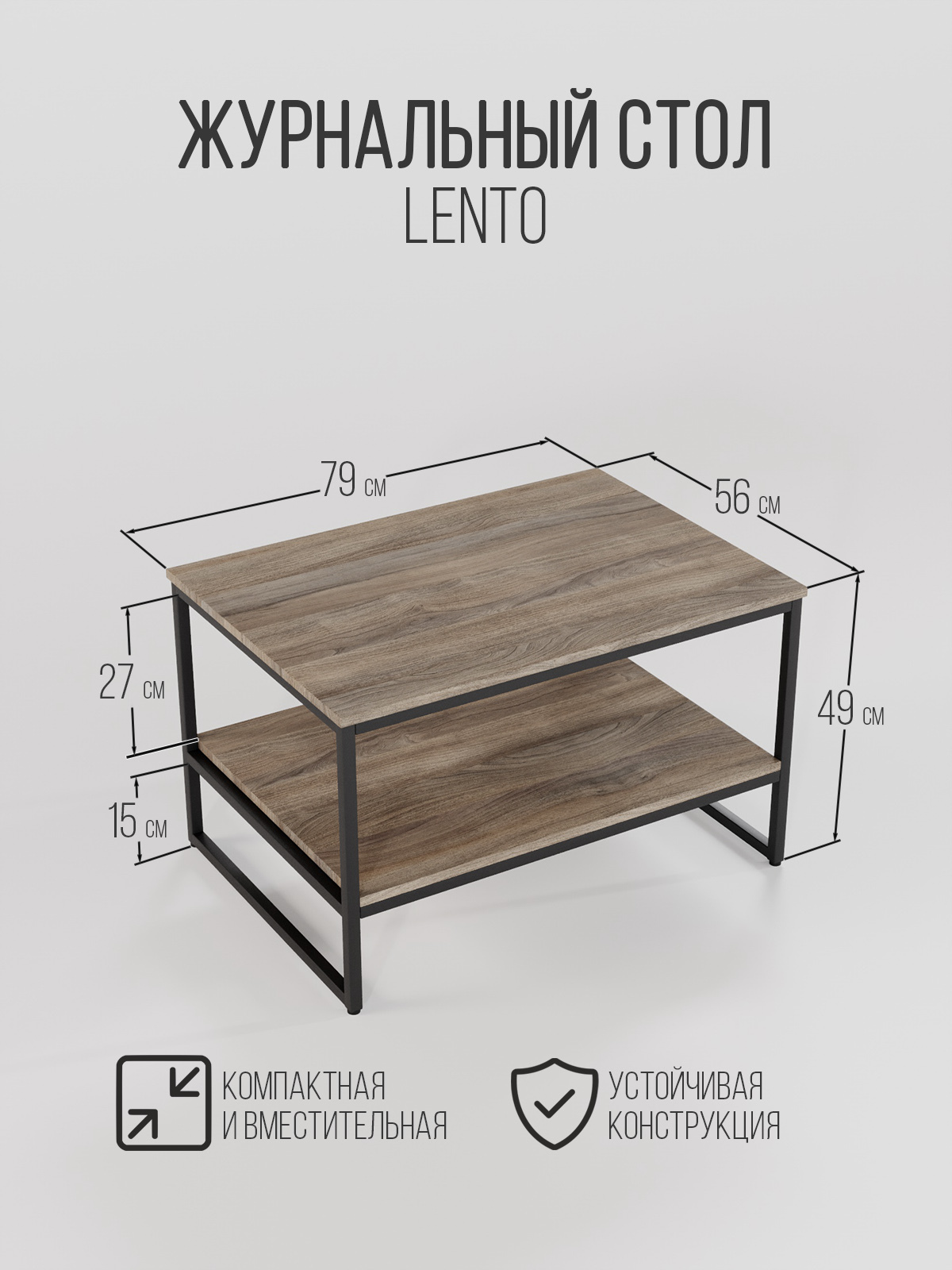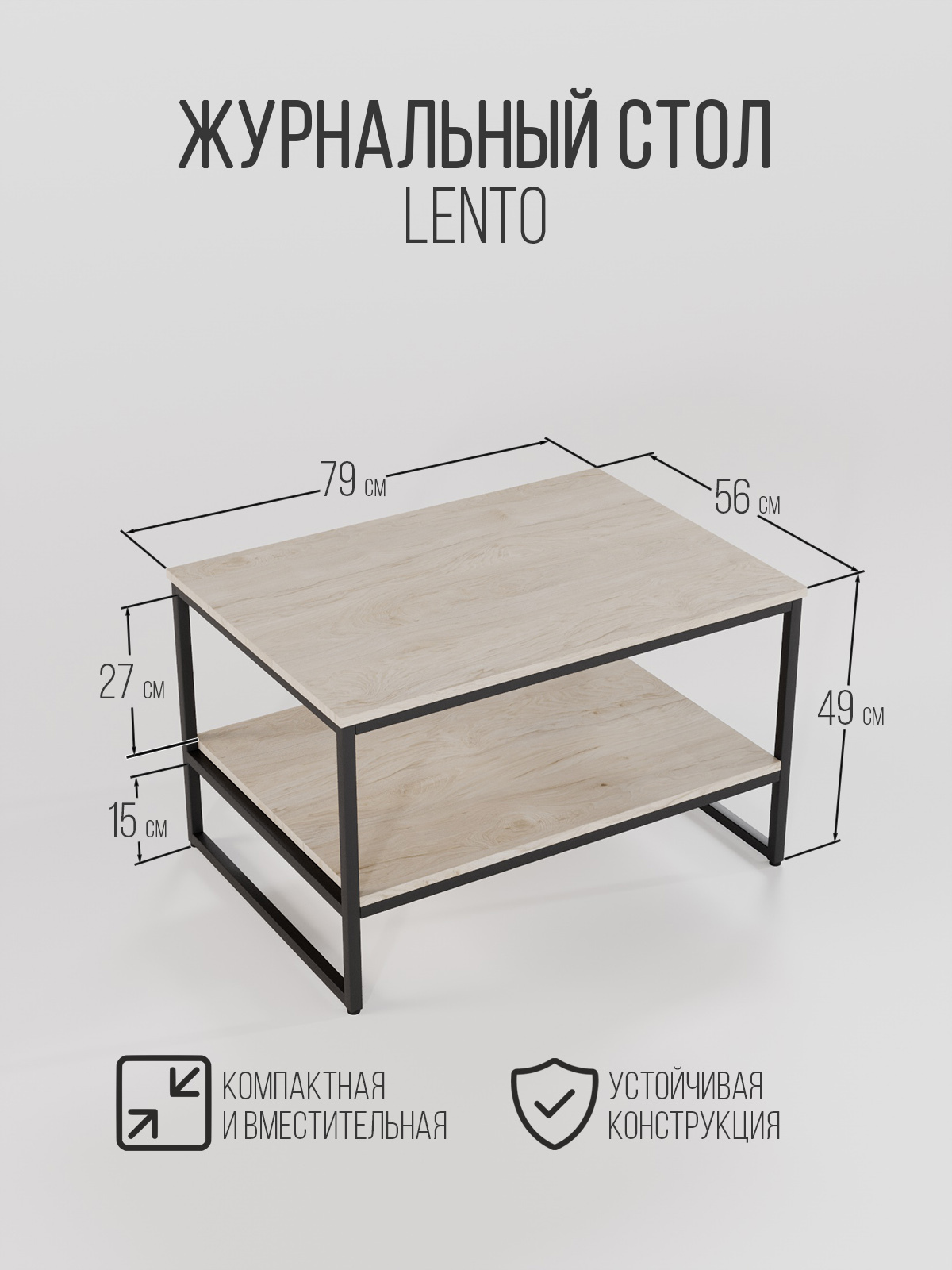 Журнальный столик LENTO — это практичное решение в стиле лофт, когда нужен порядок и удобство без лишней “мебельной тяжести”. За счёт двух полок столик работает как маленькая система хранения: сверху — всё, чем пользуетесь каждый день, снизу — вещи, которые должны быть рядом, но не на виду.
