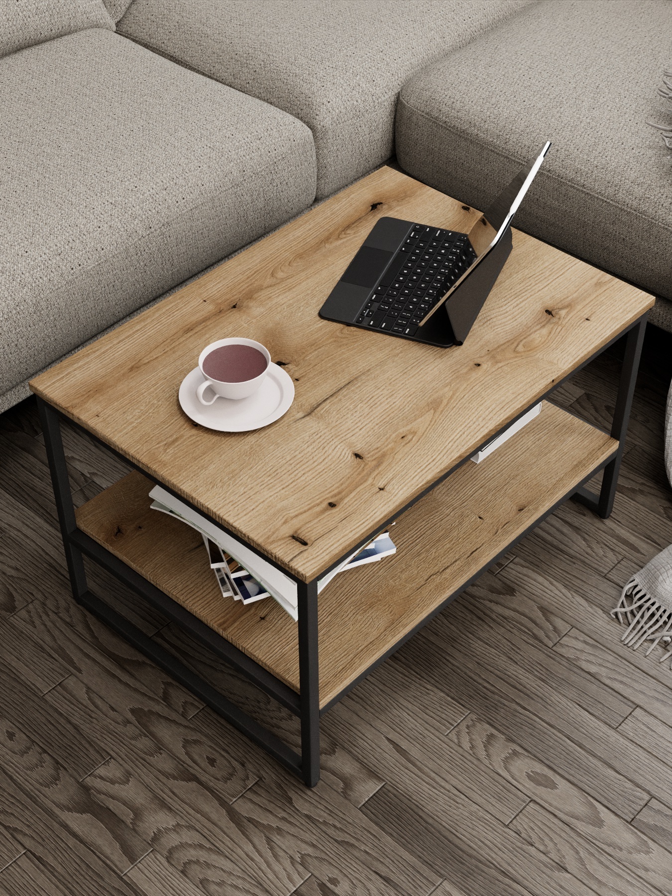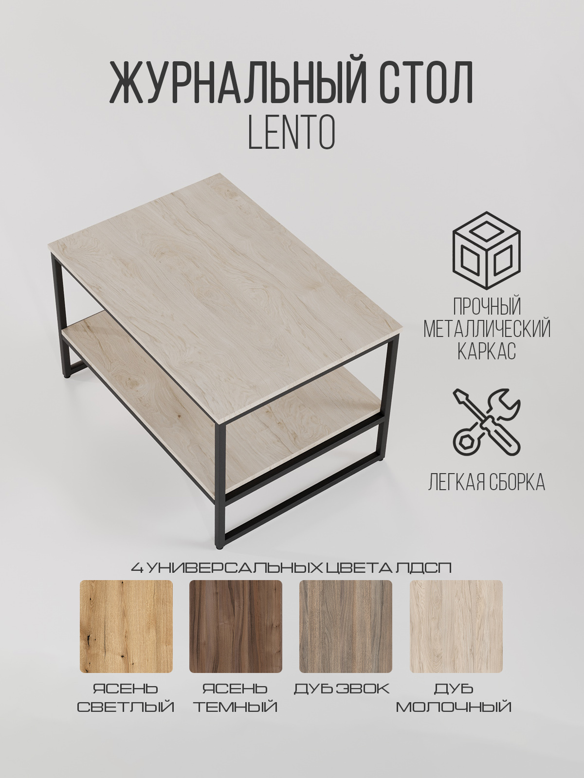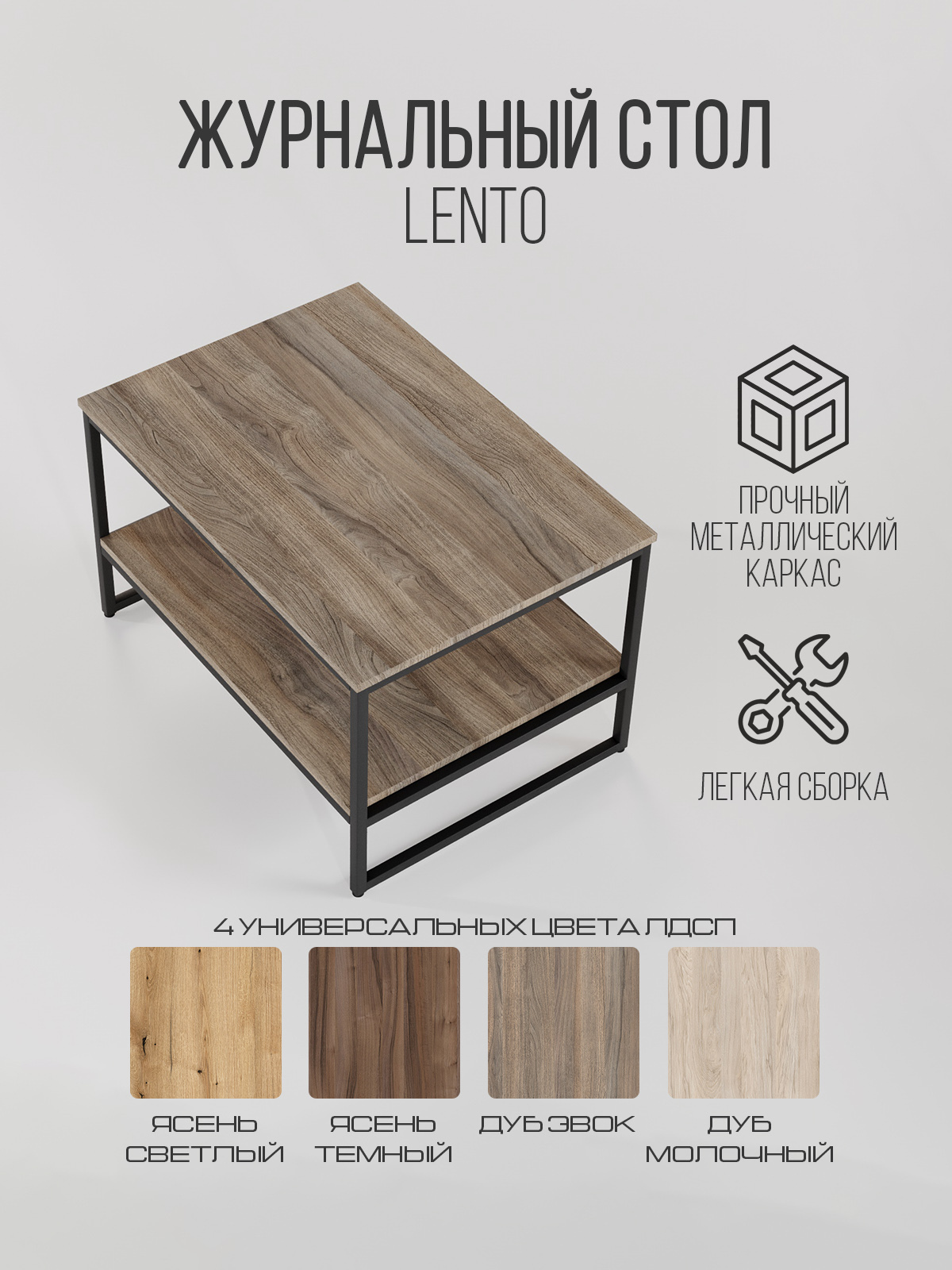 Журнальный столик LENTO — это практичное решение в стиле лофт, когда нужен порядок и удобство без лишней “мебельной тяжести”. За счёт двух полок столик работает как маленькая система хранения: сверху — всё, чем пользуетесь каждый день, снизу — вещи, которые должны быть рядом, но не на виду.